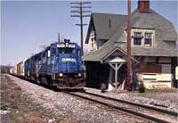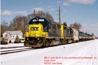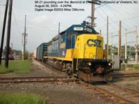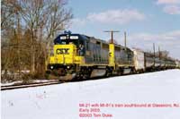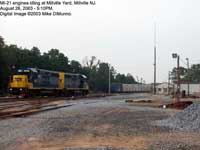 Even Millville Yard offers a decent view of the power used for both MI-61 and MI-21 idling there. Millville Yard can be accessed from the end of a dead end street called "Ladow Road", off of Wheaton Avenue in Millville (this is just south of the route 55, exit 26). The photograph on the left is at Millville Yard. Photograph: Mike DiMunno.